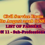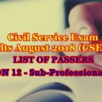 Civil Service Exam Results August 2018-REGION 12 Passers (Sub-Prof. Level)