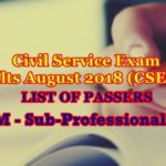 Civil Service Exam Results August 2018-ARMM Passers (Sub-Prof. Level)