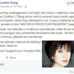 Cynthia Patag Slams Crass Behavior of Alleged Supporters of Presumptive President Duterte