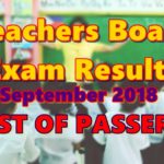 Teachers Board Exam Results September 2018 LIST OF PASSERS