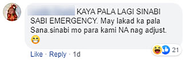 Kaya pala lagi sinabi sabi emergency, may lakad ka pala. Sana sinabi mo para kami na nag adjust,” a netizen wrote in comments.