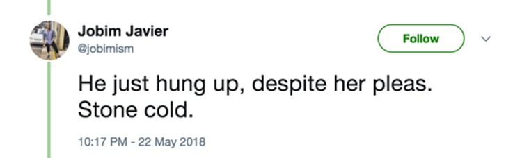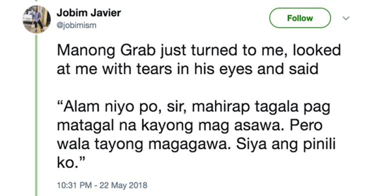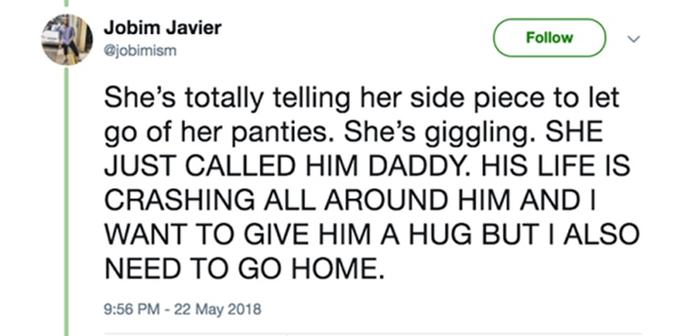 Netizen Jobim Javier’s live tweet soon went viral as he shared the sad story of a heartbroken man.