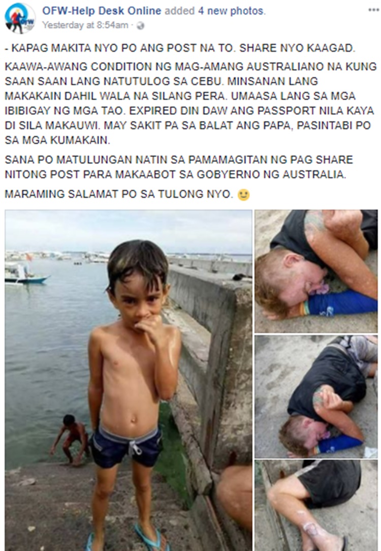 The Page of OFW-Help Desk Online asks other netizens to share the post in order to get some help for the Australian beggars.
