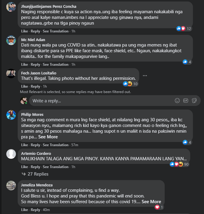 Meanwhile, others express worry because face shields are supposed to cover the entire face. Still, the man was lauded for trying his best to follow health protocols against the deadly coronavirus.