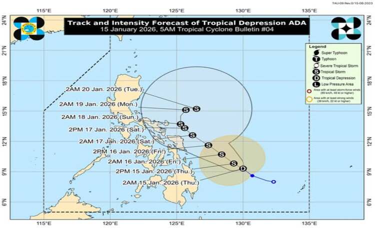 PAGASA: Tropical Depression Ada Strengthens