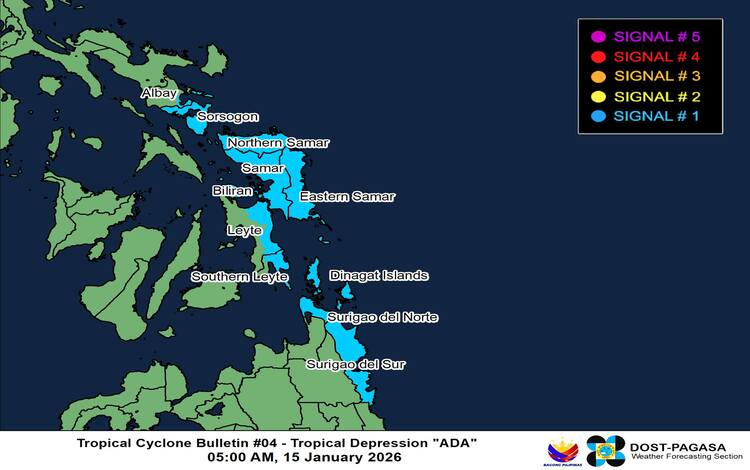 The highest possible signal that may be raised as Ada progresses is Wind Signal No. 2, according to PAGASA.