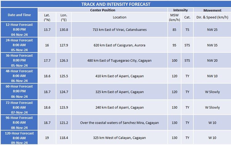 Marce is expected to continue its west-northwest trajectory until November 5, after which it is predicted to slow down and veer westward. Current projections indicate a possible landfall over Babuyan Islands or mainland northern Cagayan on Thursday evening (November 7) or early Friday morning (November 8). The storm’s intensity may increase substantially, potentially reaching typhoon status by Wednesday morning.