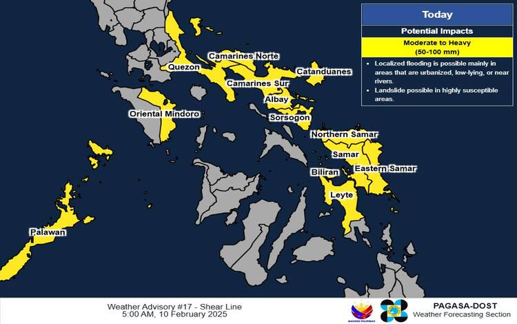 The Philippine Atmospheric, Geophysical, and Astronomical Services Administration (PAGASA) has issued a comprehensive weather forecast for Monday, February 10, 2025, highlighting the influence of the Shear Line and the Northeast Monsoon on various regions of the country.