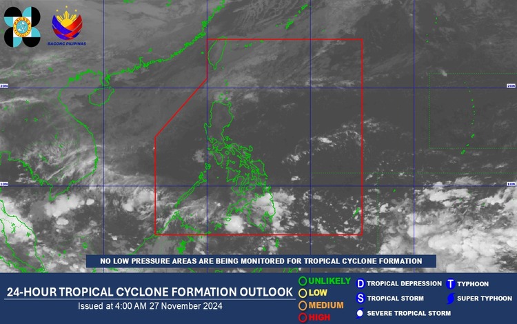 The Philippine Atmospheric, Geophysical, and Astronomical Services Administration (Pagasa) released its weather forecast for November 27, 2024, highlighting the impacts of the Northeast Monsoon and the Intertropical Convergence Zone (ITCZ) on different parts of the country.