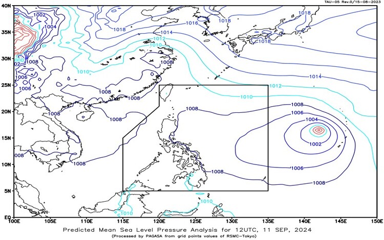 - Cagayan Valley, Aurora, Quezon, and the rest of the Bicol Region: Partly cloudy to cloudy skies with isolated rain showers or thunderstorms are likely, caused by the trough of STS Bebinca. Flash floods or landslides are possible during severe thunderstorms.