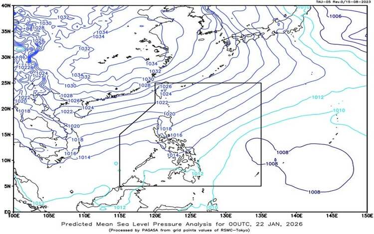 PAGASA advised small seacraft operators and fishermen to exercise caution, particularly in areas with rough to very rough seas, and encouraged the public to stay updated through official weather bulletins. Pagasa WEATHER FORECAST January 22, 2026